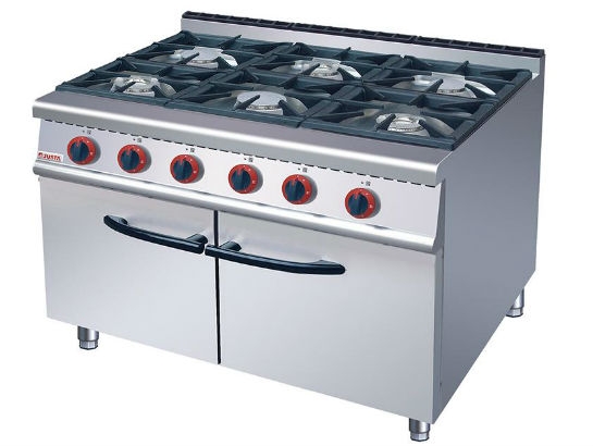 六头燃气煲仔炉连柜座 JUS-RA-6 炉头功率多种且易于更换,有9KW、7KW/4.5KW、3.5KW供客户选择; 炉头采用精密铸造,镀硬铬加工而成,火力稳定经久耐用; 炉头为花型火焰设计,效率高节能,火焰大小可调节; 炉面模具拉伸成型,易于清洁; 炉头位于水盆凸起部位,可防止溢出; 重型炉架,超长炉柄,可使用于各种最小的锅; 带熄火保护及大小控制装置,操作简单;